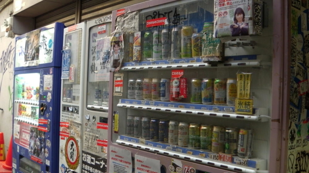 市場の脇道には自販機も完備してます。・・・・・・え? なんだかよくわからないものが貼ってあるって? それは目の錯覚です。
