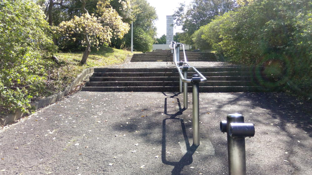 陸上自衛隊信太山駐屯地のほど近くにあり、信太山陸軍墓地の跡地ともなっている公園です。コンクリートの大きな信太山忠霊塔が目立つ公園ですが、街を一望できる展望台があったり、4月には桜が咲いていたりと、なかなか魅力的な公園でした。