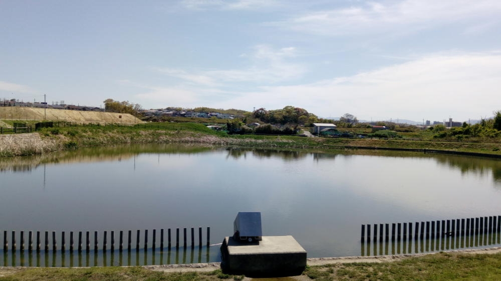池に来た。都会であると同時に、田舎でもある和泉市ならではって感じ。広々とした畑とかも見えます。