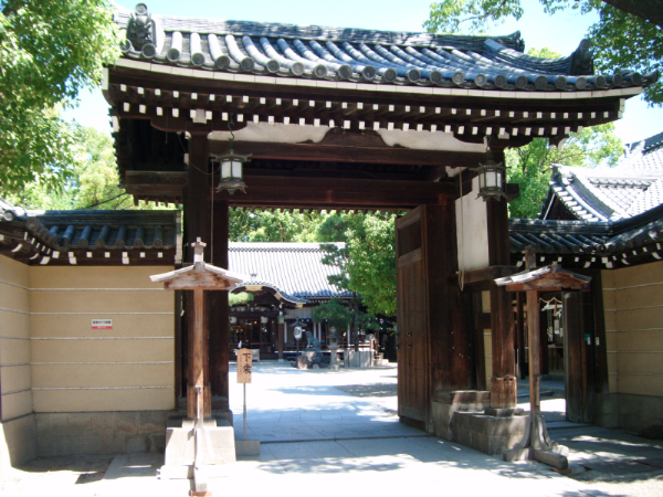 杭全神社 かさ上げされた大門