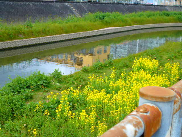 まぁ、僕の花粉症事情なんてどうでもよくて、この日は恩智川(おんちがわ)っていう川に菜の花の群生地があるって他の人のブログでみて、実際に見に来ました。いつかは行こう、いつかは行こう・・・・・・って思うこと早数年、重い腰をあげ、ついに見に来れたんです、はい。