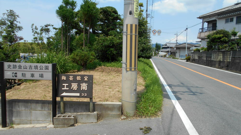 金山古墳にはいくつか出入口があるとは思うのですが、車で訪れる場合は金山古墳公園駐車場に停めることができます。すぐ隣には『陶芸教室 工房南』という施設もあったりします。