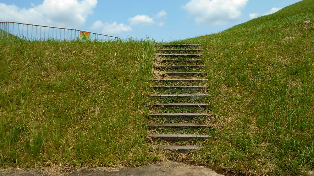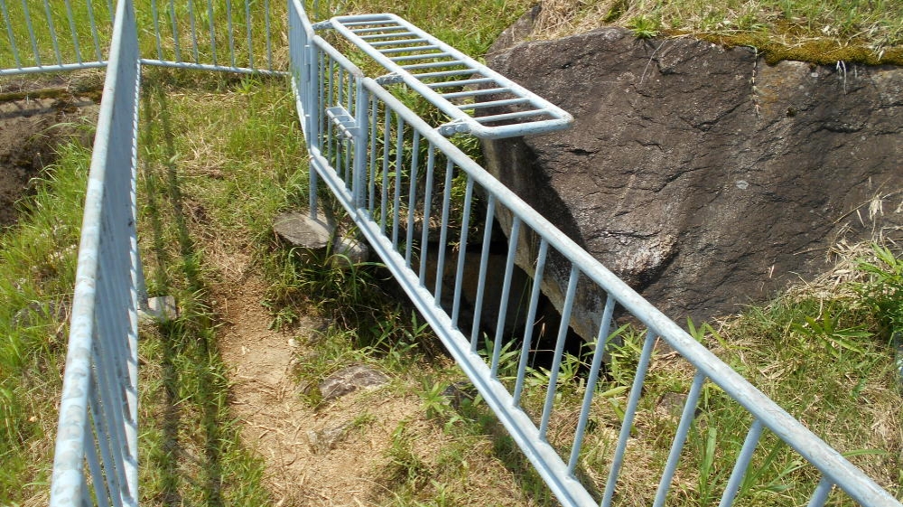 階段が設置されていて、ここから登って北側円丘の石室を覗き見ることができます。