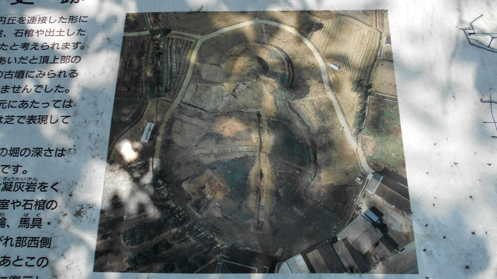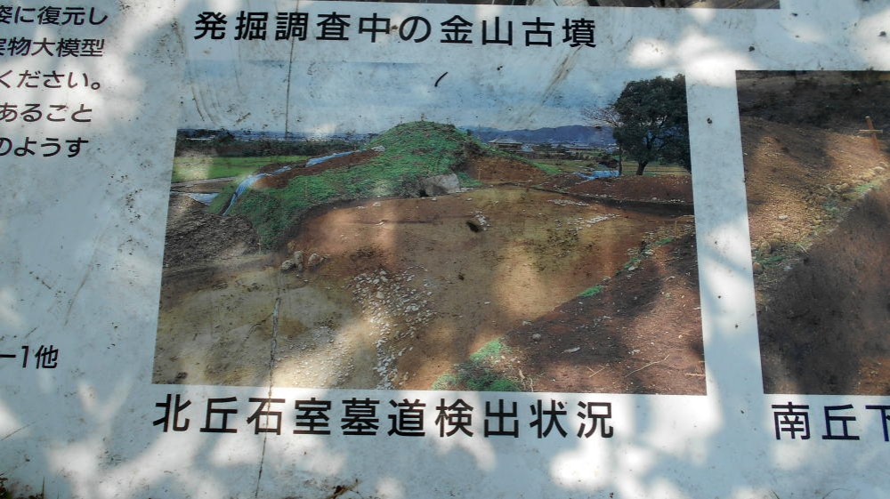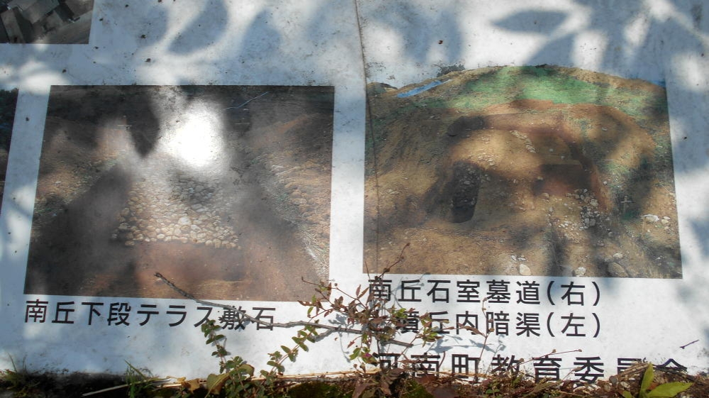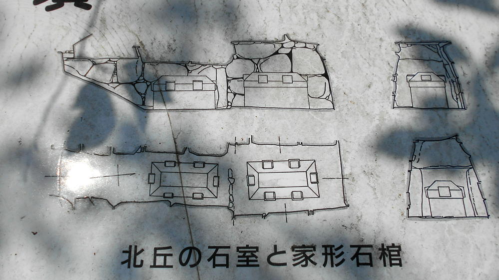 このときの発掘調査では北側の円丘(小さいほうの円丘)がメインだったようで、南側の円丘はまだ調査されておらず、石室があるということ以外は分かっていないようです。