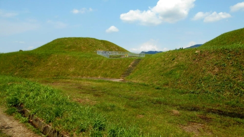 金山古墳のように円丘が連結したようなヒョウタン形の古墳のことを双円墳と呼ばれているようでして、全国的にも珍しいタイプのようです。