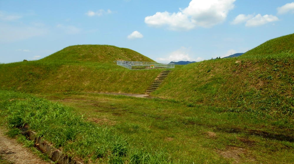 この金山古墳はヒョウタンのような形をしていて、全国的に珍しいとされている双円墳のようなのです。現在はキレイに整備されていて、ちょっとした憩いの公園のようになっていました。