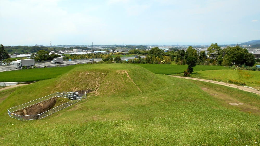 この古墳ですが、実は立ち入ることが可能となっています。堀がありますが、水はありません。全長85.8mなので、ササっと探索できます。