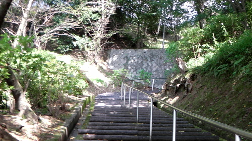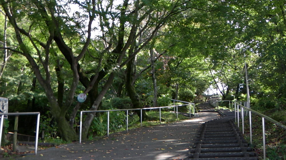 長野公園は小さな山の上に造られた公園なんです。なのでさっそく階段を駆け上がっていきますよ。