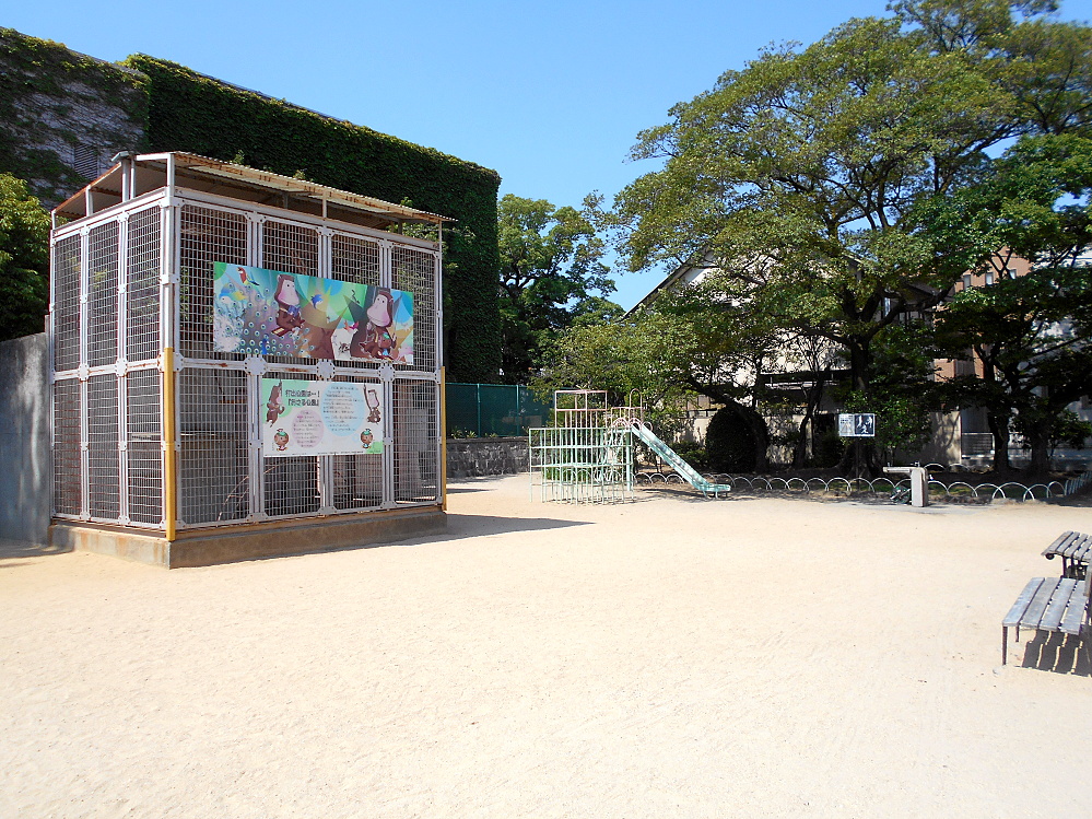 打出公園という特別広くはない公園なのですが、ここには大きな檻がありまして、そこにかつてはサルなどの動物がいたのです。