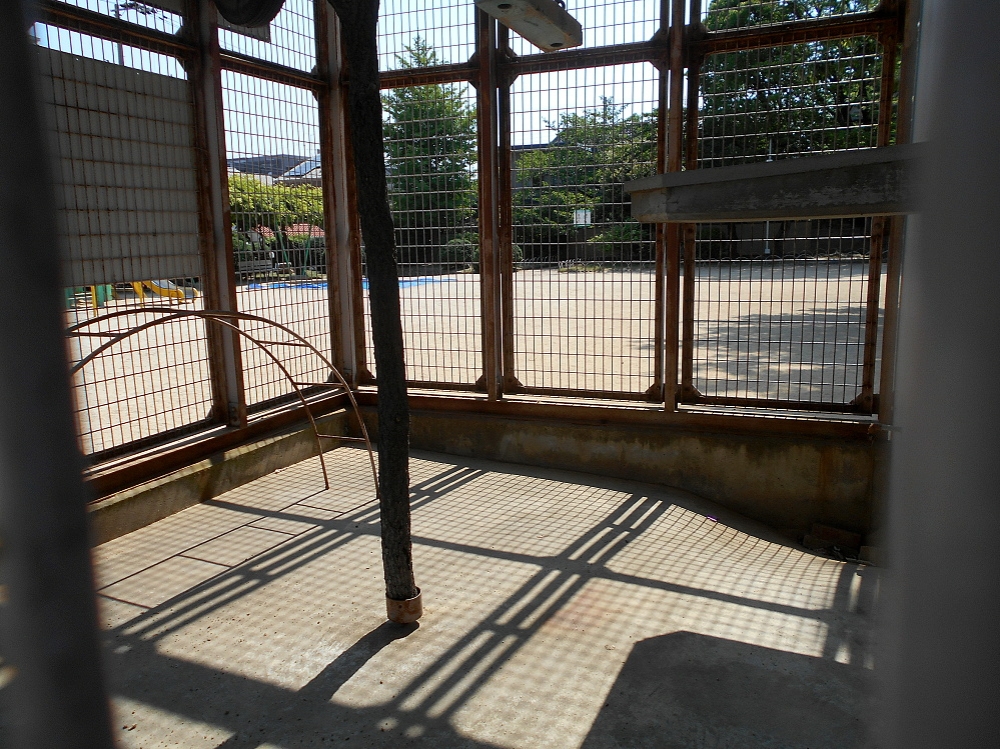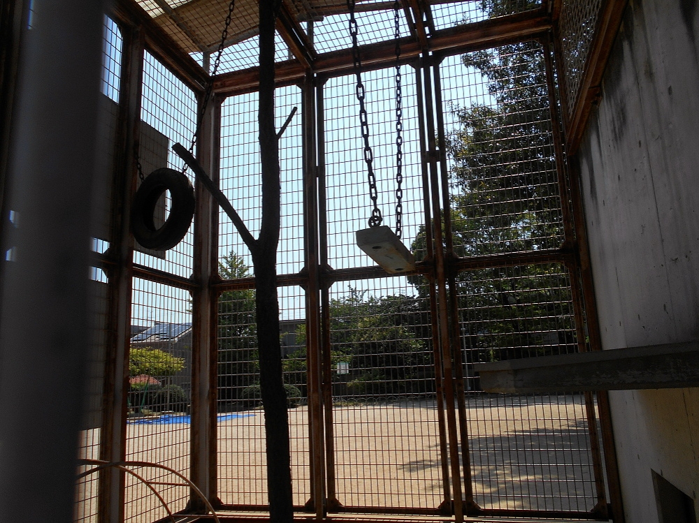 この大きな檻に、かつてはいろんな動物が住んでいたらしいのです。もう十年以上も前の話なので、僕はみたことないけどね。